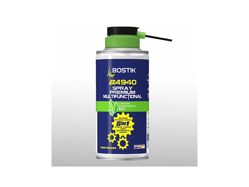 Multifunkční přípravek je skvělým řešením pro mnoho úkolů doma, v dílně i mimo ni. Pomáhá chránit, udržovat a čistit: auta, jízdní kola, nábytek, materiály, nářadí, mechanismy, elektrická zařízení... a mnoho dalšího! BOSTIK BA940 lze použít v automobilovém průmyslu, strojírenství, zámečnických dílnách, hobby pracích a mnoha dalších. Je kompatibilní s většinou plastů, těsněními a nátěrovými hmotami. Doporučujeme však před použitím zkontrolovat kompatibilitu na mimořádně jemných podkladech.