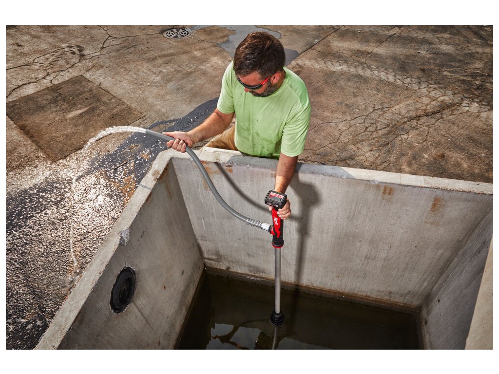 - Čerpá více než 2000 l/hod a až 1000 l na 1x M12™ 6,0 Ah akumulátor, ideální pro vyprazdňování příkopů, bouřkových kanalizací, venkovních elektroměrů, dešťových sudů a různé další aplikace