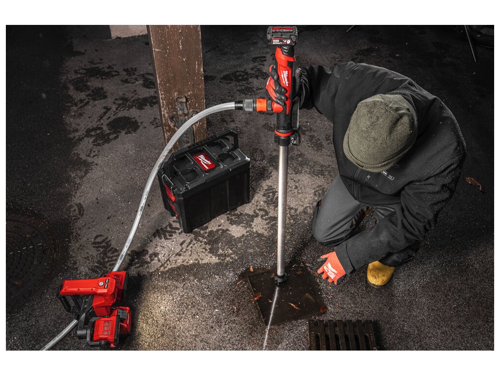 - Čerpá více než 2000 l/hod a až 1000 l na 1x M12™ 6,0 Ah akumulátor, ideální pro vyprazdňování příkopů, bouřkových kanalizací, venkovních elektroměrů, dešťových sudů a různé další aplikace