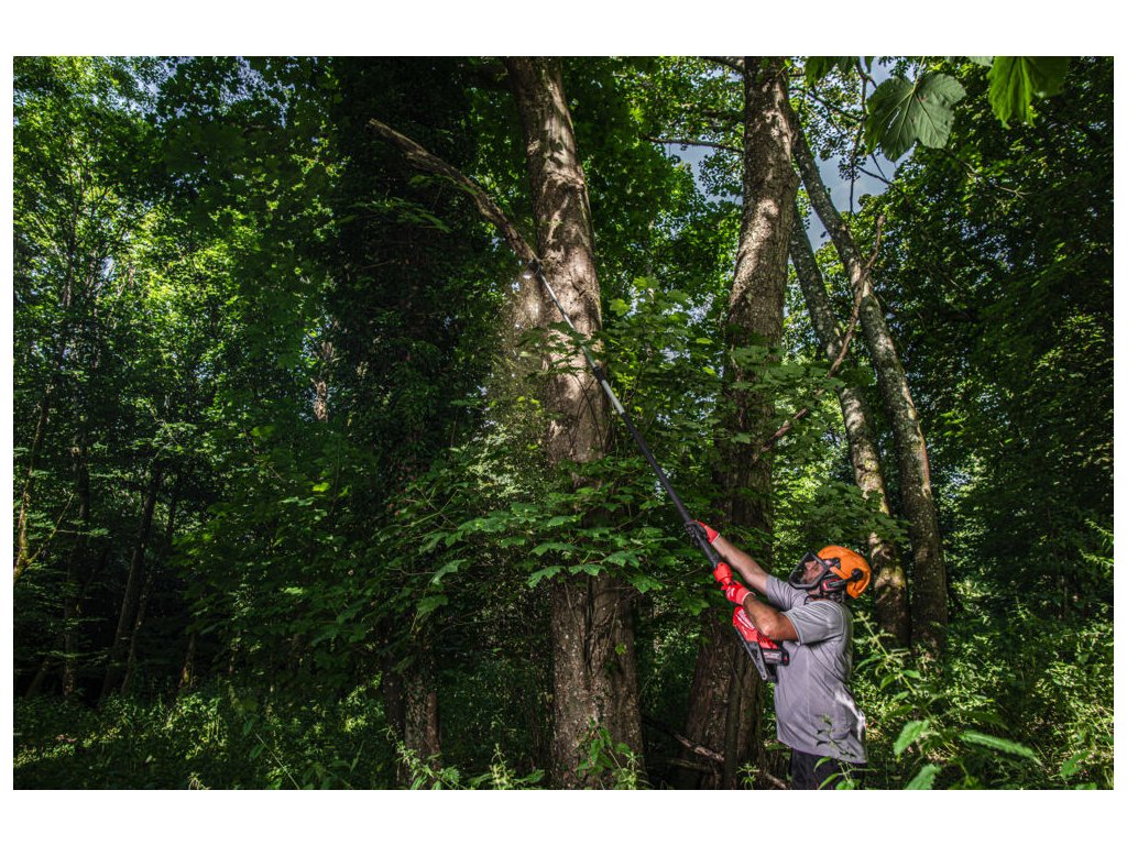 - Dosahuje přesného prořezávání i ve vyšších částech stromů s dokonalým vyvážením a designem