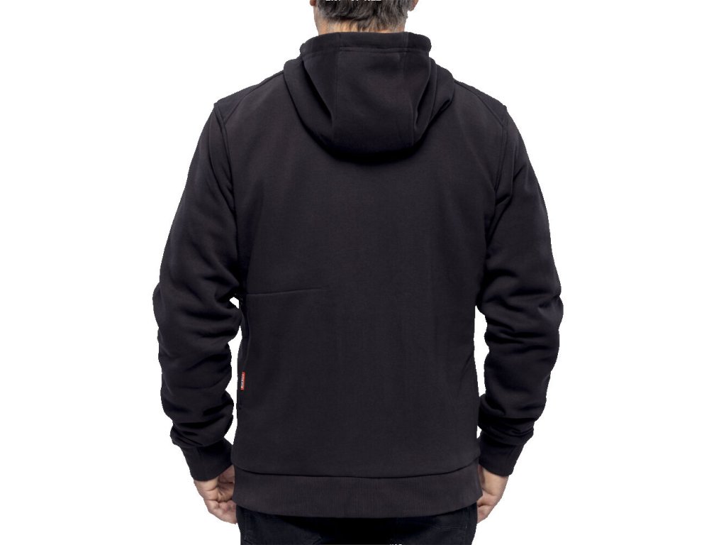 - Odolná vyhřívaná mikina s kapucí z pevné bavlny (56 %) s vyztuženými užitkovými kapsami a vnitřní hřejivou fleecovou podšívkou z polyesteru (44 %) – navržená tak, aby obstála i v náročných venkovních podmínkách